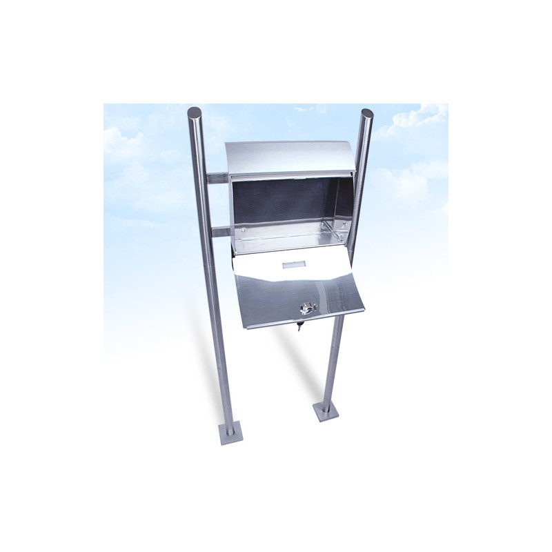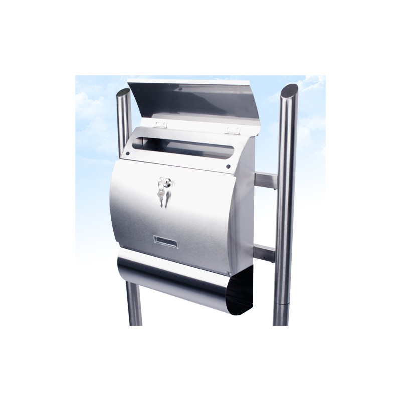 Poštanski sandučić na stalku od nehrđajučeg čelika u elegantnom, zakrivljenom obliku sa držačem novina.